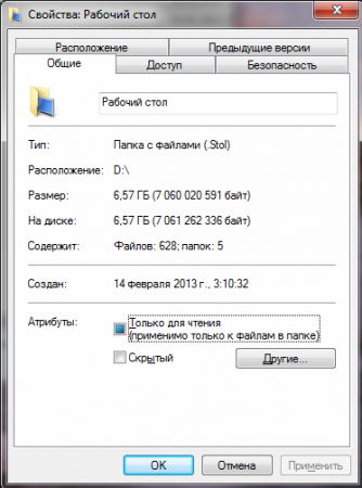 После чего перед нами снова окно свойств папки «Рабочий стол»